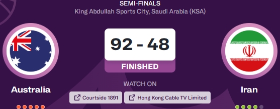 08月17日讯 2025年男篮亚洲杯半决赛,澳大利亚92-48血洗伊朗,晋级决赛。