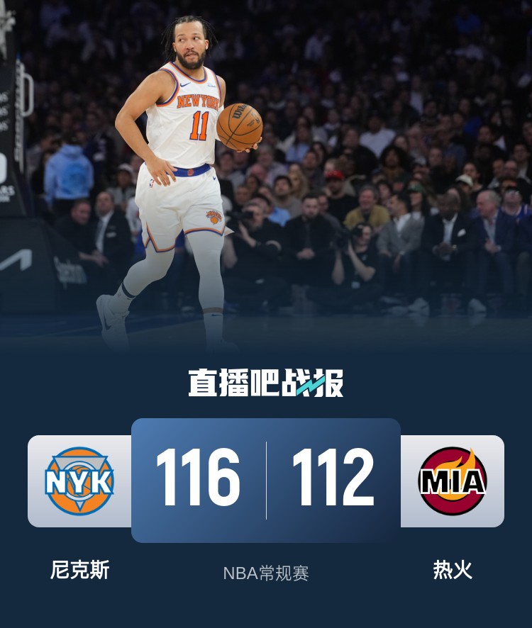 布伦森31+5+6 阿德巴约30+7 尼克斯加时险胜热火迎三连胜