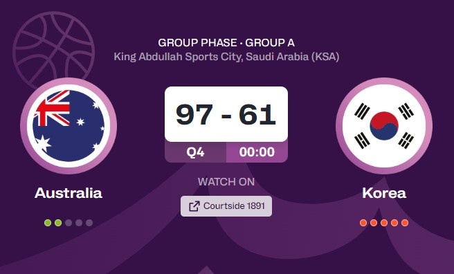 8月6日讯 男篮亚洲杯小组赛,澳大利亚男篮97-61大胜韩国36分。
