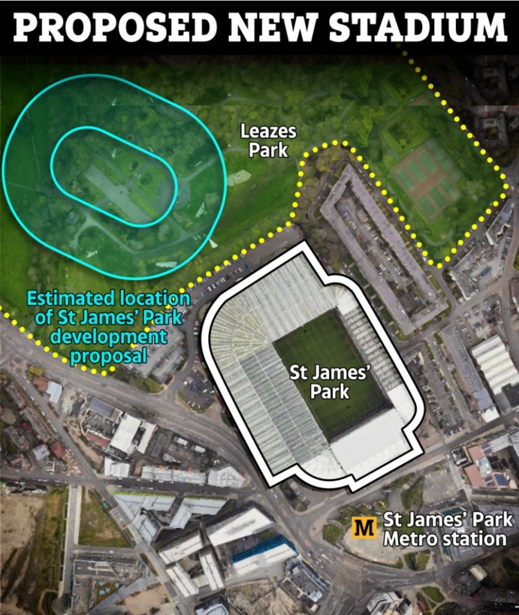 纽卡斯尔曾考虑留在圣詹姆斯公园球场,并将其扩建至6万多个座位。然而,建造一座全新的体育场被认为是实现新收入最大化的最佳途径。但电讯报的一篇相反的报道称,纽卡斯尔还没有就新球场的问题做出决定。据说他们还不确定是留在圣詹姆斯还是去其他地方。而新增座位的实际数字也尚未确定。纽卡斯尔自1892年以来一直在圣詹姆斯公园球场,它仍然是英格兰足球界最具代表性的球场之一。纽卡斯尔希望一个全新的球场能够激励俱乐部成为欧冠常客。