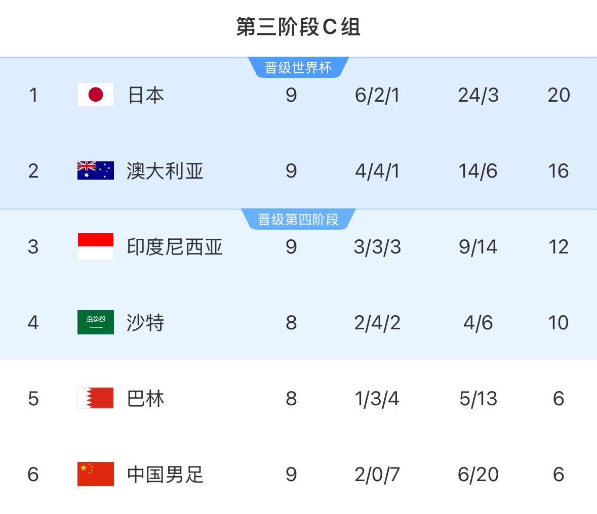 直到终场哨声长鸣,1-0的比分没有改变。这三分让印尼积攒了12分,暂时上升至第三位,挤掉了沙特阿拉伯。距离晋级第四轮仅一步之遥,现在只需等待沙特阿拉伯对阵巴林比赛的结果。