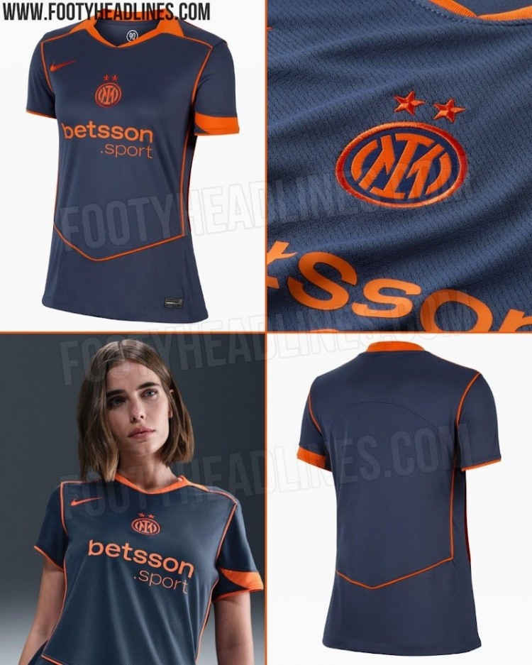 国米新赛季第三球衣谍照:深蓝主色调上衣,搭配橙色球裤