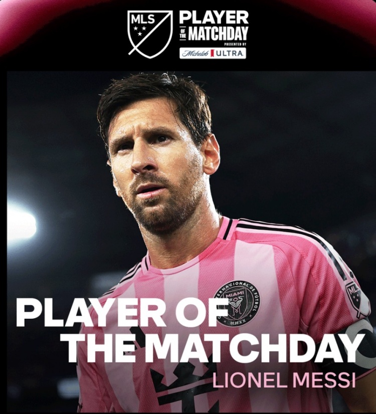 7月21日讯 迈阿密国际对阵纽约红牛的比赛,梅西2射1传,帮助迈阿密国际5-1取胜,他当选本轮比赛最佳球员。